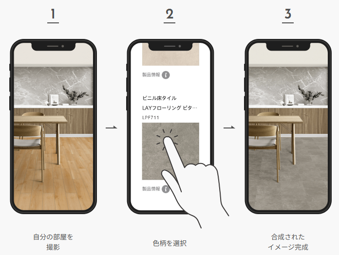 ということで、紹介したいのが、サンゲツが出しているアプリ「フロアタイル着せ替えシミュレーション」です。